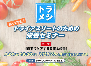 そのためこのセミナーでは、スポーツ栄養学の専門職とトライアスロン競技の専門スタッフから、オンラインの栄養セミナーとして、この時期にケアする食事や栄養面から、自宅でできるセルフチェックやコツなど