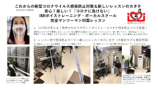 IMIボイストレーニング・ボーカルスクール大阪校では、大阪府からの休業要請解除により5月16日 より個人レッスンを再開しているが、ボイストレーニングのレッスン時に起こり得る飛沫の抑制・防止にユニークなアイデアを持って取り組んでいる。