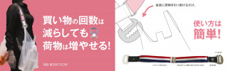 買い物袋を両側の金具に引っ掛けてベルトを背負うなど、日常重いものをもつ場面で威力を発揮します。