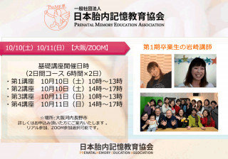 一般社団法人日本胎内記憶教育協会の講師養成講座第1期卒業生の岩崎講師の基礎講座になります。