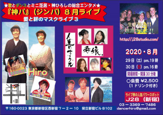 なお、8 月 29 日(土)30 日(日)の新宿「J28」での『神パ』、および、9 月 6日(日)の、八王子市芸術文化会館「いちょうホール」の「チャリティ コロナ サポート 水無月歌謡祭」の両方とも、参加パフォーマーを募集中との事。