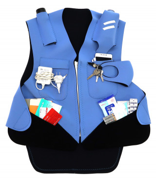 パットキルは、ウェットスーツ素材などでおなじみのネオプレーンで作られています。作っているのは長年に渡り、オーダーメイドのウェットスーツを作っている職人です。深海の寒さにも耐えるネオプレーン素材の持つ保温性や伸縮性が、防災ベストに活かせると考えたのが商品開発のスタートでした。