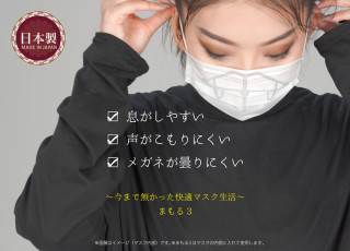 見た目は変わらないのに「息がしやすく、声がこもりにくく、メガネも曇りにくい」のが、まもる3です。
