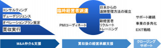 まさに「カギを回すだけの状態=ターンキー」で北米進出を可能にするサービスです。最大の特徴は、アメリカビジネスと日本の企業文化に精通した経営者を臨時で派遣することで、日本企業と買収先企業の国際間ギャップをできるだけ低くした上で、買収先の従業員や顧客、取引先を新体制に移行することができます。