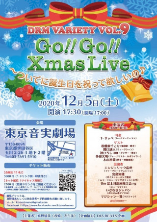DRM VARIETY “Go!!Go!!Xmas Live”は、驚くなかれ、松鶴家千とせ(漫談家・歌手)・神ひろし(俳優・ダンサー・歌手)・多田文明(ジャーナリスト・ルポライター)・関口誠人(ミュージシャン)・木山裕策(歌手※映像出演)など豪華メンバーがゲスト出演。