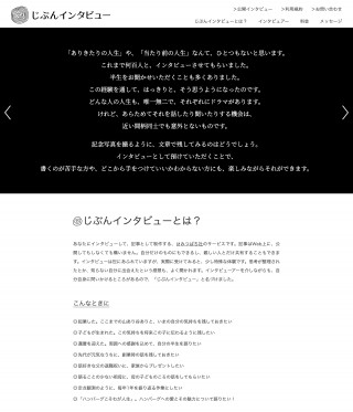 インタビューの形式や記事ページのデザインは、複数の選択肢からお選びいただけます。お申し込みからの流れ、インタビュアー、料金などについて詳しくはこちらをご覧ください。https://jibun38.net