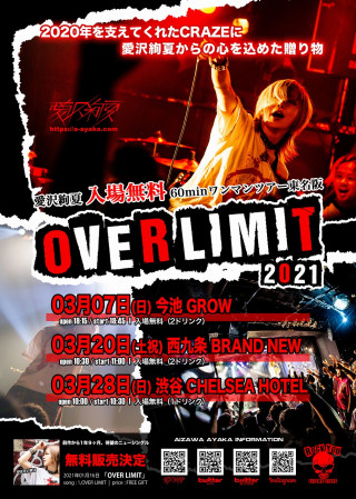 愛沢絢夏は、1月16日(土) に新しいシングル「OVER LIMIT」を発売する。いや、発売という言葉は違うな。希望する人たちに無料で配布する。3月には、東名阪を舞台に限定60分の無料ワンマン公演を行なう。愛沢絢夏のライブを体験している人ならおわかりだろうが、たった60分でも、何時もそこには、互いに気力や体力の限界まで求めあう熱狂が生まれている。