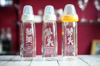 成長とともに外出、保育園など第3者の手に大切な我が子を委ねる時、名前入りのほにゅうビンはオリジナリティあふれ、置き忘れも防げるかもしれません。