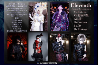 イベントのトップを担うEleventhは、Kakeru(Scarlet Valse)と有栖川塁(未完成アリス)のツインヴォーカルを中心に、ギターに凪斗(ラヴェーゼ)とYuhma(XANVALA)、ベースに70.(XANVALA)、ドラムにHakuyaを迎えて行なわれる。彼らがどんな楽曲を披露するのか楽しみだ。