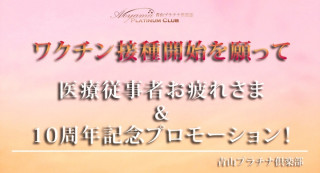 東京青山で交際クラブ・デートクラブを営業する青山プラチナ倶楽部(所在 東京都渋谷区神宮前)が、ワクチン接種開始を願って 医療従事者お疲れさま&10周年記念プロモーションを実施することをお知らせ致します。