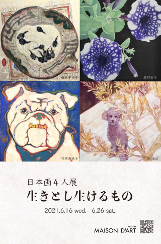 花や動物など、生あるものを、日本画の画材を駆使して力強く描かれています。各々4-6点の出展でございます。