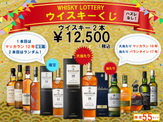 「マッカラン12年が必ず当たるウイスキーくじ」は 第一弾が好評につき50セット全て完売。第二弾として ラインナップを追加し 55セットご用意致しました。