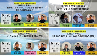 全国から生徒を募集している飯野高校では、下記の通りオンラインによる高校説明会を以下の日程で開催しています。卒業生や在校生が飯野高校での生の体験をお話します。さらに全国どこからでもオンラインで直接疑問にお答えします。