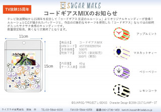 テレビ放送開始から15周年を記念して「コードギアス 反逆のルルーシュ」よりオリジナルキャンディーが登場!