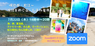 水の都・松江~水辺をめぐる しまね夏旅は、島根県松島市の後援により開催されるオンラインプログラムであり、夏に楽しめる島根の観光地をご紹介します。出雲大社や松江城だけでなく水の都を巡り、宍道湖から日本海、美肌の湯と言われる玉造温泉に松江グルメまで幅広く取り上げます。当日は宍道湖からの夕日を生中継し、リアルタイムサンセットをお届けします。プログラムで取り扱ったアクティビティを体験できるワーケーションプログラムのご紹介もあるので、オンラインで体験した後に実際に足を運べるプログラムも見逃せません。