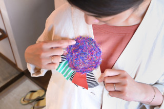 それに賛同してくれた作家「sayapico」が今回元は靴下になるはずだったカラフルな端糸を生地にしてコースターやブローチへと蘇らせてくれました