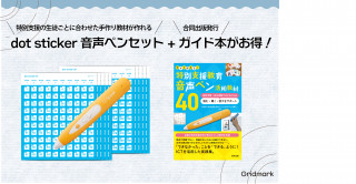 グリッドマーク株式会社(本社:東京都千代田区、代表取締役:吉田健治)は、合同出版株式会社の「特別支援教育 音声ペン活用教材40 教科学習・自立活動で子どもたちの読む・聞く・話すをサポート」の発行を記念し、2021年8月2日(月) より同書籍とdot sticker音声ペンセットをセットにした特別販売を実施いたします。