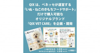 株式会社QIX(所在地:東京都町田市、代表取締役:生田目康道)は、2021年8月 より業務提携契約を締結している株式会社ベネッセコーポレーション(以下ベネッセ)との取り組みで、ベネッセが運営する『いぬ・ねこのきもちフードサポート』のみで購入可能なオリジナルブランド【QIX VET CARE】を企画・開発いたしました。