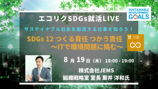 環境サステイナビリティ領域の人材サービスで25年以上の実績を持つ株式会社グレイス(所在地:東京都千代田区、代表取締役:安井 悦子)は、SDGs実現に取り組む企業で働くプロフェッショナルによる就活生向けキャリアセミナーを開催します。今期第一弾は「ITで環境問題に挑む」株式会社JEMSから組織戦略室 室長 粟井氏をゲストにお迎えします。 詳細・申込はこちら→ https://ecoriku.jp/newgrads/live/20210819.html