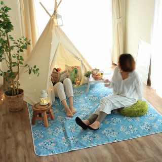 お家でキャンプ気分を楽しむ「ベランピング」や「部屋キャンプ」にも大活躍なリバーシブルレジャーマット。通常のレジャーシートと比べて厚手で、断熱性や防湿、防水性に優れた素材を使用しているため、冷たいコンクリートやフローリングの上でも快適。はっ水、防汚加工がされているので、濡れた地面で使ってもサッとホースで流すだけ。お子様やペットがいても安心ですね。rugoo(らぐー)オリジナルのおしゃれで可愛い北欧風のデザインや、ガーリーな花柄など、気分に合わせて楽しめるのも◎。
