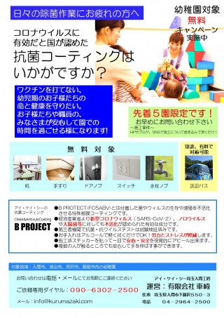 ▼幼稚園向け無料キャンペーン 実施中 国が コロナウイルスへの有効性を 認めた抗菌コーティング
