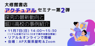 大修館書店は、11月7日(日) に高校・中高一貫校・教育委員会の先生を対象としたセミナーを開催する。当日は、「総合的な探究の時間」を巡る状況の解説と、京都市立堀川高校・紀平武宏先生による探究の事例紹介に加え、大修館書店のオンライン型探究教材"アクチュアル"の詳しい情報も聞くことができる。