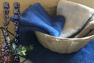 その和紙素材の特性は綿よりも耐久性・吸水性・湿度調節機能に優れています。そのこだわりの和紙糸を綿と合わせてパイルに織り込み、仕上げることで、シャリ感とふんわり感のほどよい風合いに。