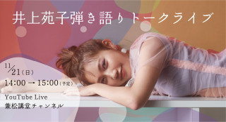 11月21日 14時から、井上苑子さんが出演するのは、弾き語りと事前に募集した質問にご本人が回答していくトークライブです。井上さんは若い世代を中心に大人気のシンガーソングライターです。小学生の頃から活動されている井上さんの心惹かれる歌声が聴け、さらに貴重なお話も聞ける機会となっております。