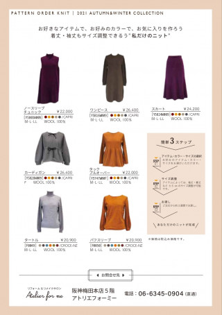 阪神百貨店のファッションリフォーム&リメイクショップ「Atelier for me アトリエ・フォー・ミー」では、2021年11月5日 から11月17日 まで期間限定で、ホールガーメントで編み上げる縫いしろのないストレスフリーなニットのオーダー販売を実施します。