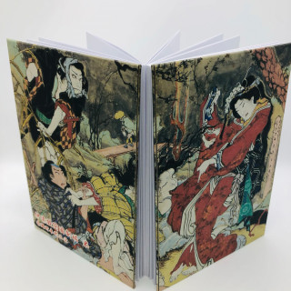 この度、高知製本(高知県高知市神田686-1)では絵金蔵(高知県香南市赤岡町538)の協力を受け、高知の絵師金蔵の描いた芝居絵を題材とした御朱印帳の販売を開始します。2013年の出雲大社の式年遷宮をきっかけとした御朱印ブームは今だ衰えず、むしろ若年層が神社仏閣へ参拝するきっかけとして貴重な動機付けとなっております。今回は絵師金蔵の芝居絵屛風から4点を販売致しますのでご案内をさせていただきます。