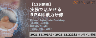 【12月開催】実務で活かせるRPA即戦力研修(Power Automate Desktop、UiPath Studio)