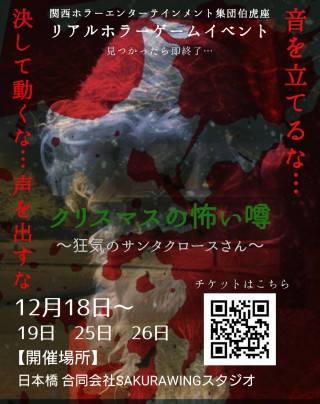 関西No.1お化け屋敷プロデューサー大河虎之介とエグゼクティブプロデューサーNIINAが運営する、関西を中心に全国各地でお化け屋敷、ホラーイベントをプロデュース、運営を手掛ける『関西ホラーエンターテイメント集団伯虎座』が手掛けるリアルホラーゲームイベントが登場!!