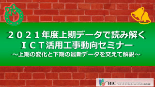 2021年度上期の土木工事、ICT活用工事を「土木工事入札落札情報D-NET」のデータから集計・分析します。 2021年度上期は工事件数が減少傾向となりました。その原因も解説いたします。 さらに2021年下期10月・11月の件数、年度末や来年度に向けてどのように推移していくかも先月のセミナーの内容にプラスアルファの内容でお届けいたします。