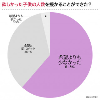 61.5%の人が、希望した人数の子供を持てていない