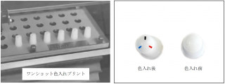 これまでは極細の注射器を使い手作業で行っていたプラスチック成形品の色入れが、インクジェットプリンターで短時間・低コストで。しかも誤差は100分の1ミリ。10分で300個もの量産が可能です。