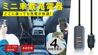 災害時は便利な電源となり、大人数で乗車する時も充電が楽々。ミニ車載充電器Farchaは、後部座席にも余裕に届ける1.5mの延長ケーブルがあり、合計4つの出力ポートを備え、どのポートにも多規格の急速充電機能が搭載されています。