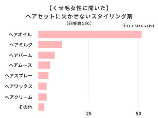 株式会社LALAが運営する「LALA MAGAZINE」(https://lalahair.co.jp/magazine/)は、日本全国のくせ毛の女性を対象に「絶対欠かせないスタイリング剤」についてアンケート調査を実施しました。その結果を
