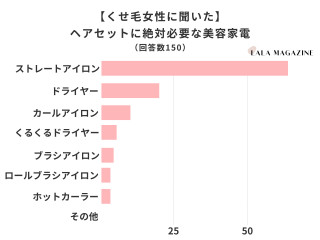 アンケート調査の結果、くせ毛の女性がヘアセットに絶対必要な美容家電は「ストレートアイロン」が1位でした。