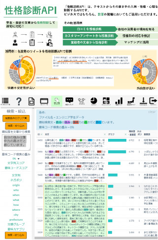 「性格診断API」を活用すると、学生・生徒の文章から性格診断して、相手のタイプに応じて適切に対応することができます。彼らの就職先や留学先候補の選定、推薦文を書く際にも、参考にすることが出来ます。