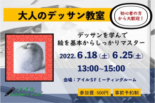 株式会社オフィスTR(アイル study&work studio)は、【大人のデッサン教室】を2022年6月18日(土) 、6月25日(土) に開催を開催致します。