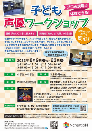 映画やドラマの吹き替え、アニメの収録などで、有名な声優も多数収録に参加したことがあるスタジオ(STUDIO LOVOX)で子ども声優ワークショップを開催いたします!