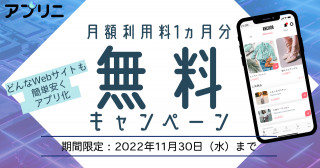ECサイト、予約サイトなどあらゆるWebサイトをアプリ化する「アプリニ」において、初回月額利用料1ヵ月無料キャンペーンを開始いたします。
