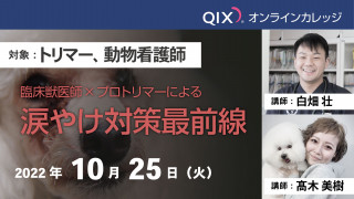 株式会社QIX(所在地:東京都町田市、代表取締役社長:生田目康道)は、QIXオンラインカレッジ『臨床獣医師×プロトリマーによる 涙やけ対策最前線』を開催いたします。