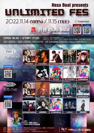 2022年11月14日 ・15日の二日間にわたって、渋谷clubasiaにて開催される音楽&パフォーマンス系フェスイベント「UNLIMITED FES」の追加出演アーティスト第三弾が発表された。