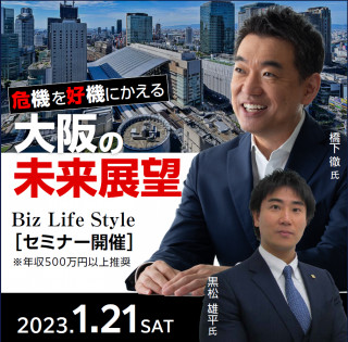 Biz Life Style初開催となる本セミナーでは、元大阪府知事・元大阪市長の橋下徹氏が登壇し、今後の大阪の可能性を大いに語っていただきます。各種メディアでは明かせない本音や裏話も交え、大阪の未来を鋭く読み解く60分。今つかみとるべきチャンスを、橋下氏から学びます。