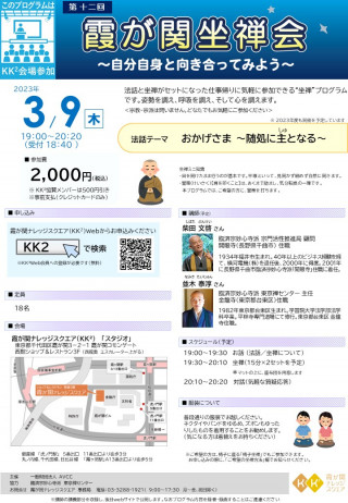 霞が関ナレッジスクエア(略称:KK² 所在地:東京都千代田区 運営:一般財団法人AVCC 理事長:久保田了司)は、2017年から仕事帰りに気軽に参加できる“坐禅”イベントとして「霞が関坐禅会」を十一回開催してまいりました。