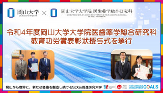 国立大学法人岡山大学(本部:岡山市北区、学長:槇野博史)の大学院医歯薬学総合研究科では、令和4年度大学院医歯薬学総合研究科教育功労賞表彰状授与式を2023年1月17日 挙行し、個人2名が受賞しました。