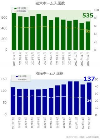◎老犬ホーム入居数は535頭、老猫ホーム入居数は137頭
