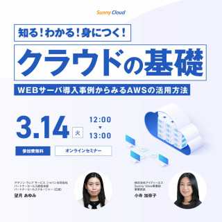 2023年3月14日(火) に、アマゾン ウェブ サービス ジャパン合同会社の協力のもと、「知る!わかる!身につく!クラウドの基礎~WEBサーバ導入事例からみるAWSの活用方法~」ウェビナーを開催いたします。