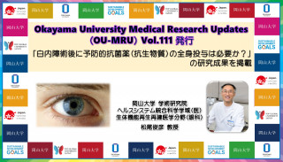 本号では、学術研究院ヘルスシステム統合科学学域(医)生体機能再生再建医学分野(岡山大学病院眼科)の松尾俊彦教授らの「白内障術後に予防的抗菌薬(抗生物質)の全身投与は必要か?」の研究成果を紹介しています。